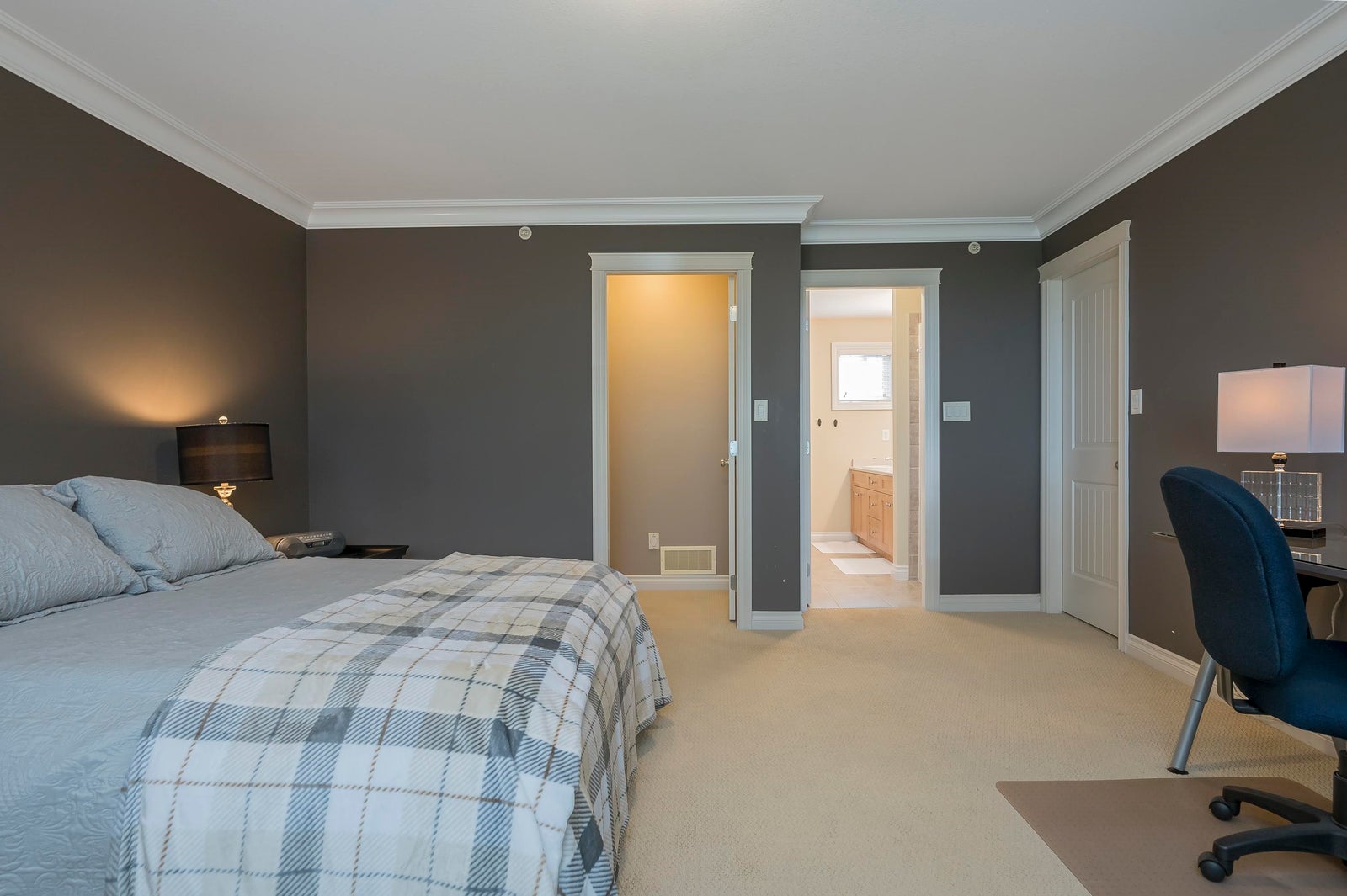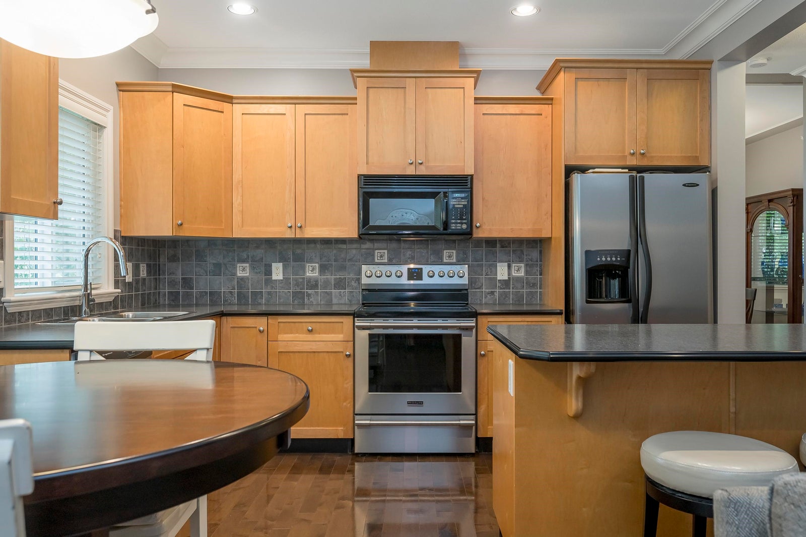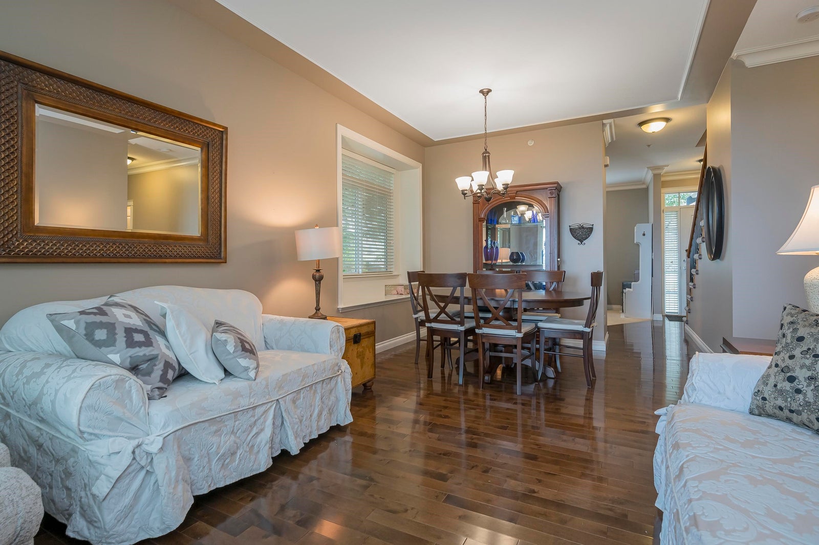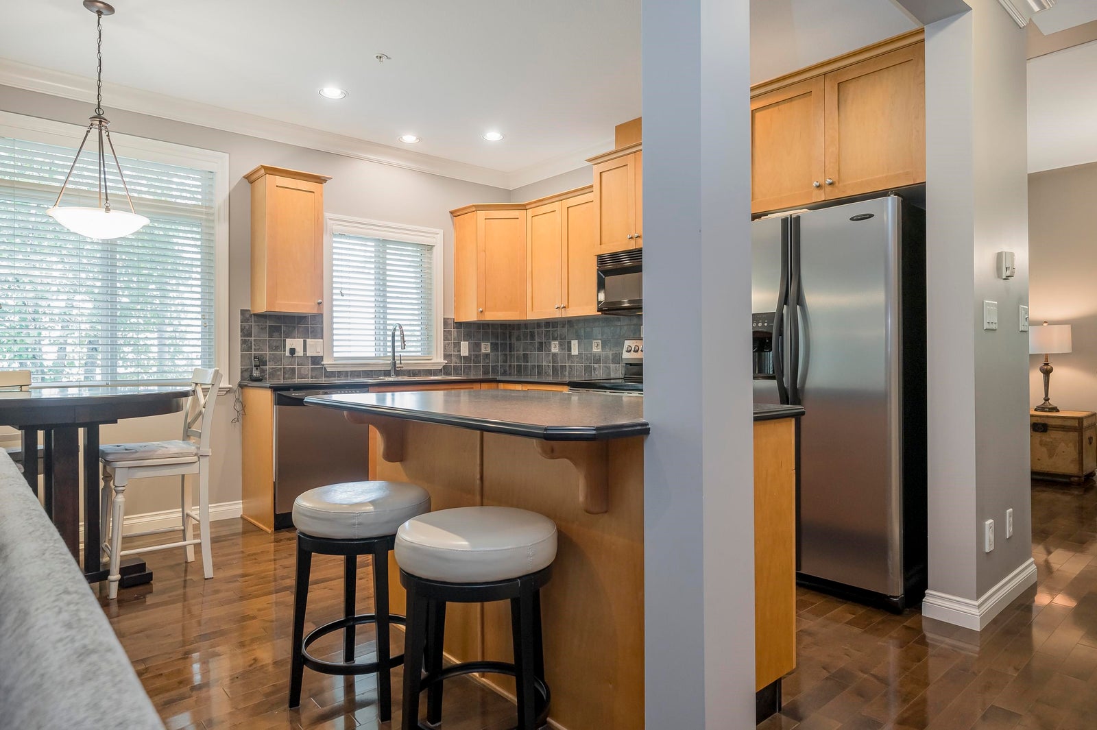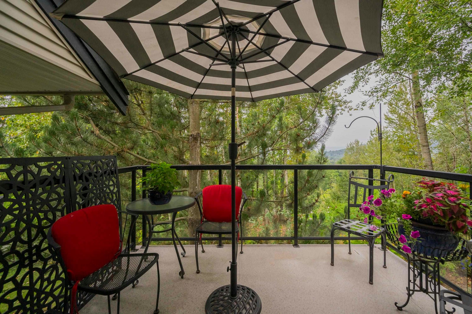 WOW! Talk about privacy! Peace and quiet with no traffic. Possibly the best location in King’s Gate! Super clean 3 level end unit townhome boasting Valley & Mountain views from all patios and decks (North shore mountains). Hardwood floors, 9ft ceilings, crown mouldings, family room & den on main floor. Master suite has large walk-in closet & easily accommodates king sized bed. Visitor parking just steps away. RV parking avail. No age rest + 2 pets ok. Walk to Ledgeview Golf Course.