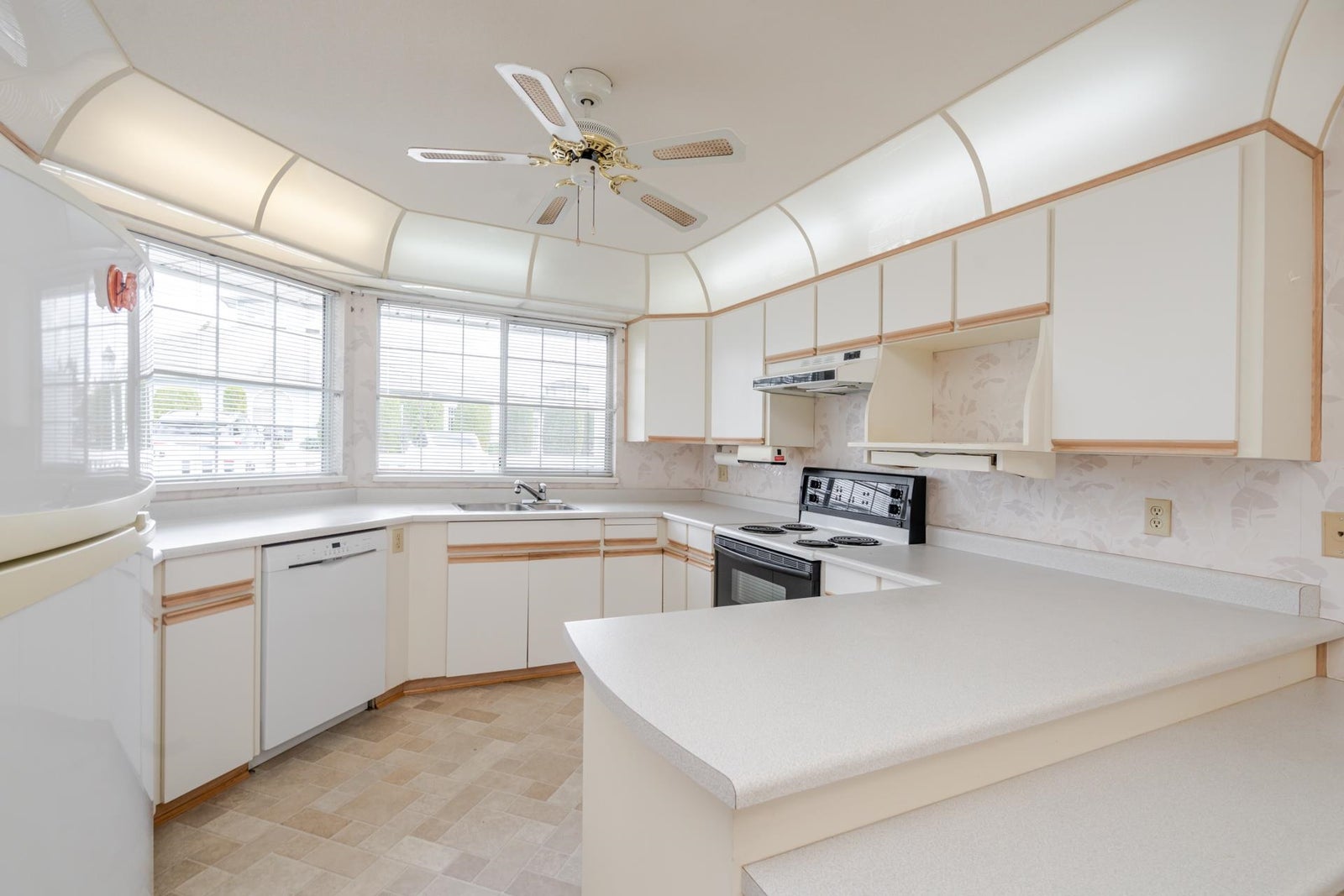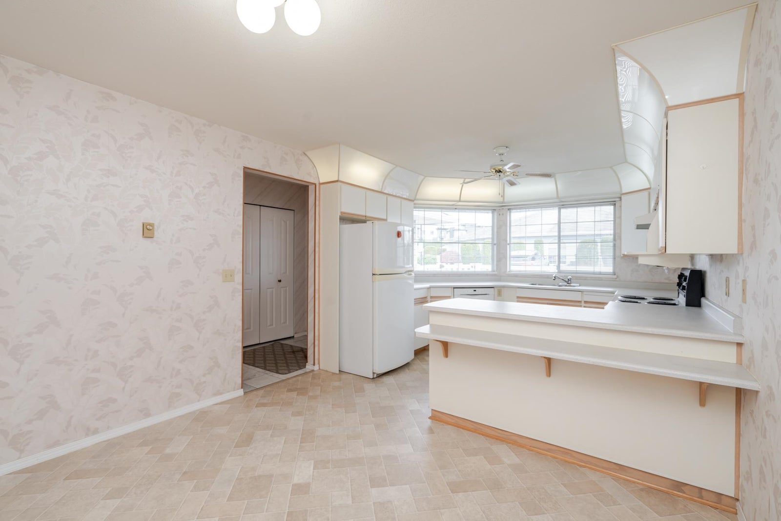 Spotless 2 bedroom 2 bathroom one level living in popular and gated Crown Point. 55+ and 1 small pet allowed. Super active clubhouse boasts games room, exercise room, library, kitchen, and huge workshop. Over-sized garage (13X18) has ample room, cupboards & workbench. This former show home is located right across from the clubhouse.