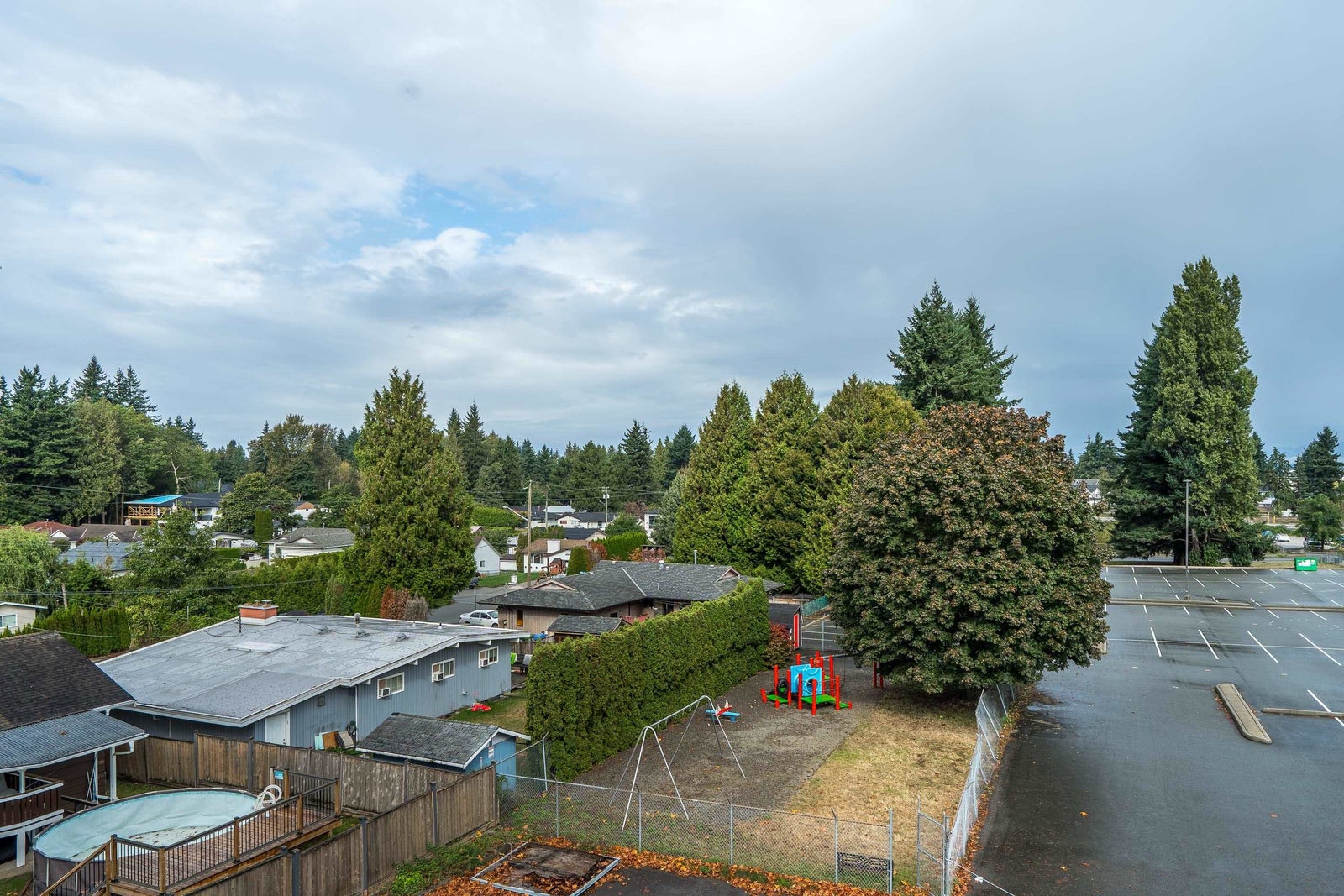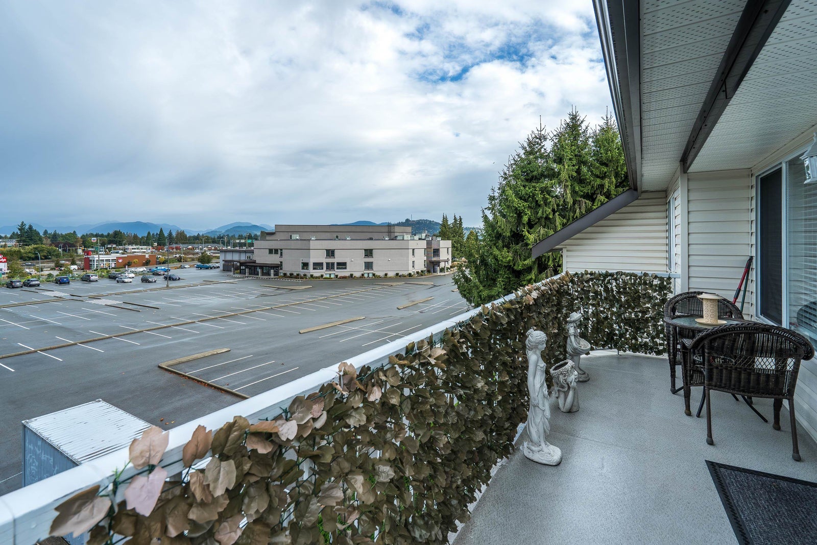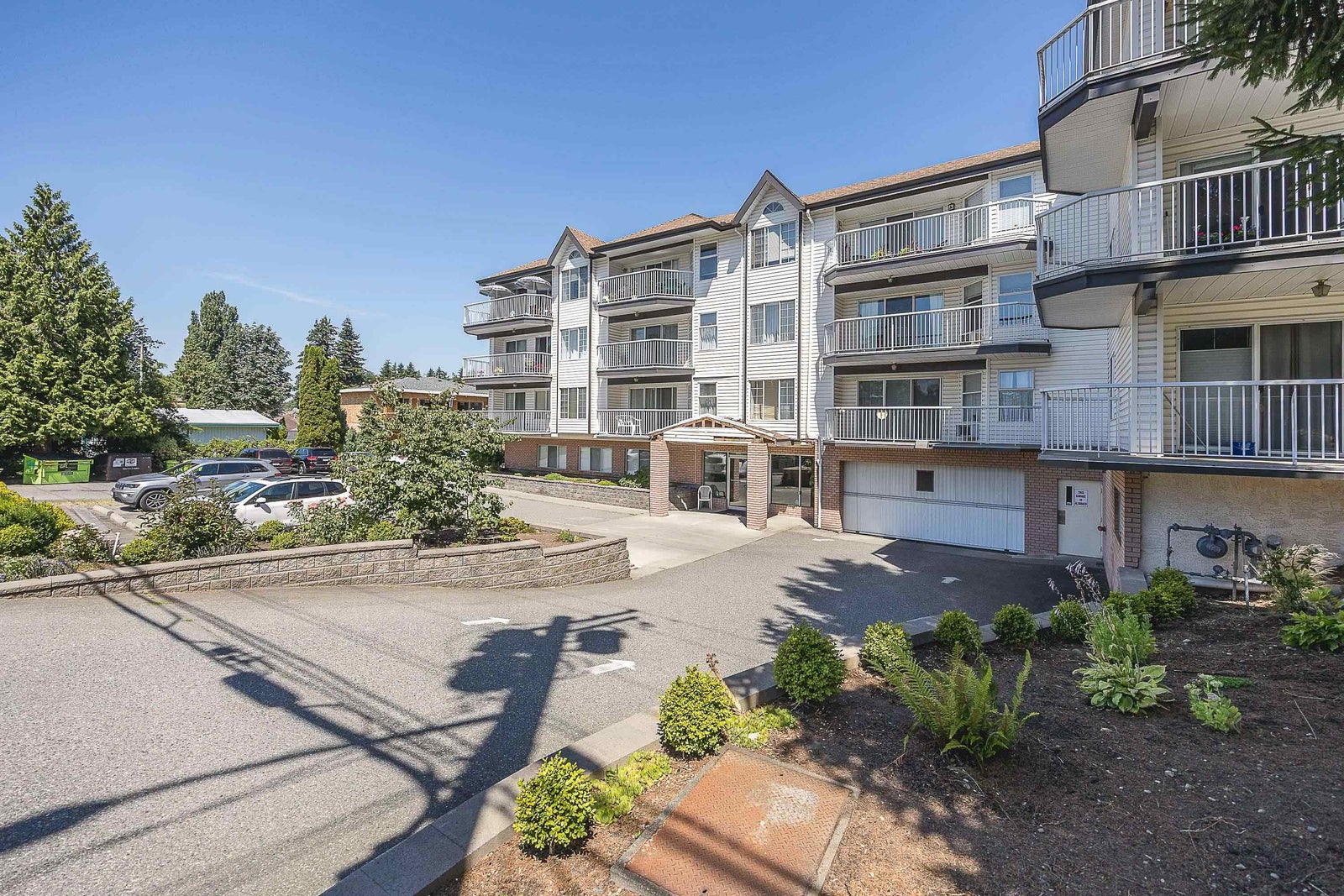 Wow! Top floor corner unit with fabulous view of North Shore Mountains. Absolutely spotless & bright boasting a wraparound balcony facing northwest. Newer floors & paint. Tons of kitchen cupboards. Secure underground parking plus lots of visitor parking. Just steps from Central Heights Manor and UFV, and only 5 minutes to Costco and the U.S. border. 55+ Building.