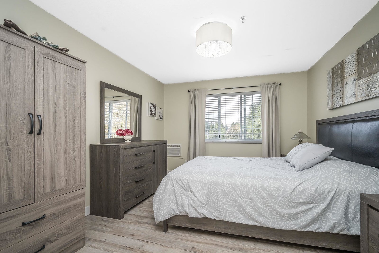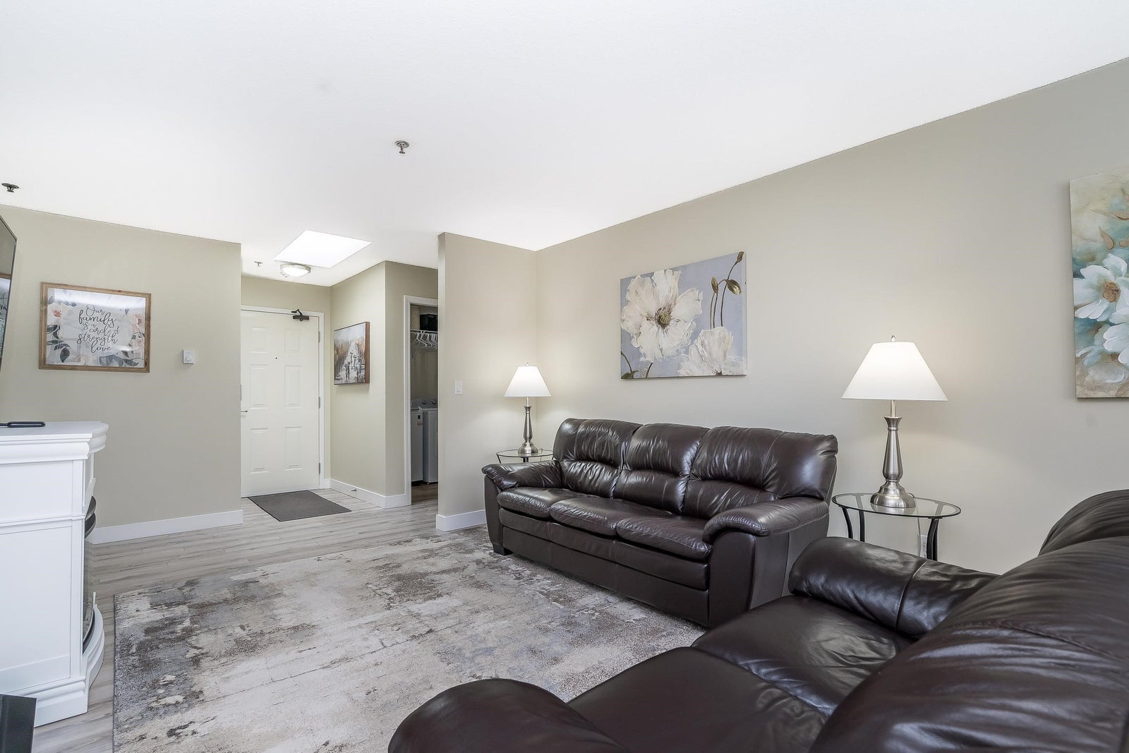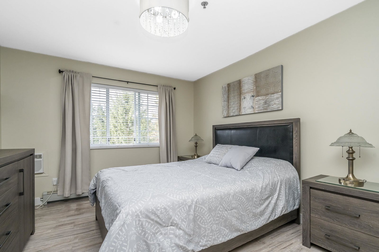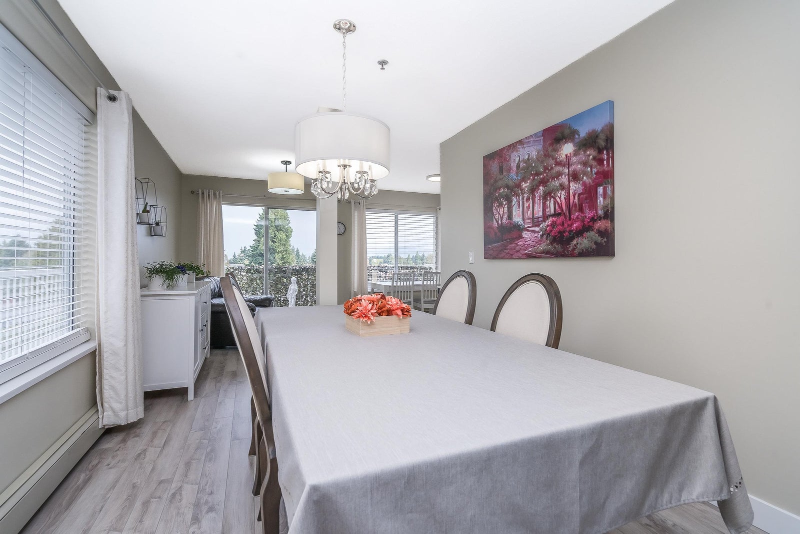 Wow! Top floor corner unit with fabulous view of North Shore Mountains. Absolutely spotless & bright boasting a wraparound balcony facing northwest. Newer floors & paint. Tons of kitchen cupboards. Secure underground parking plus lots of visitor parking. Just steps from Central Heights Manor and UFV, and only 5 minutes to Costco and the U.S. border. 55+ Building.